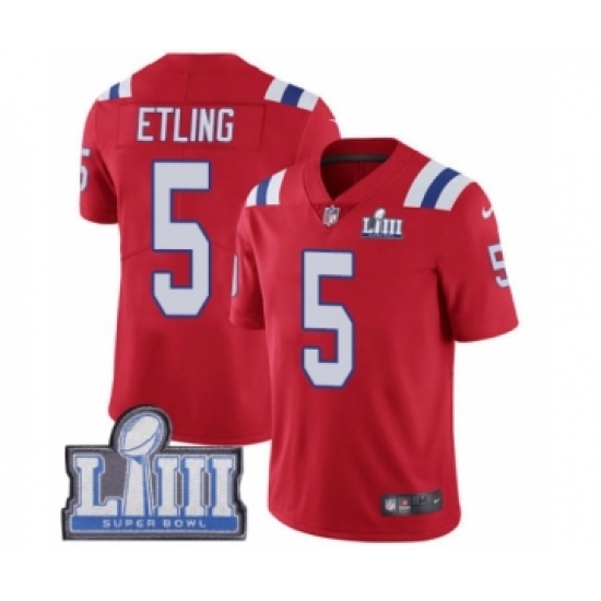 Men's Nike New England Patriots #5 Danny Etling Red Alternate Vapor Untouchable Limited Player Super Bowl LIII Bound NFL Jersey
