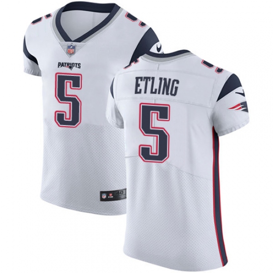 >Men's Nike New England Patriots #5 Danny Etling White Vapor Untouchable Elite Player NFL Jersey