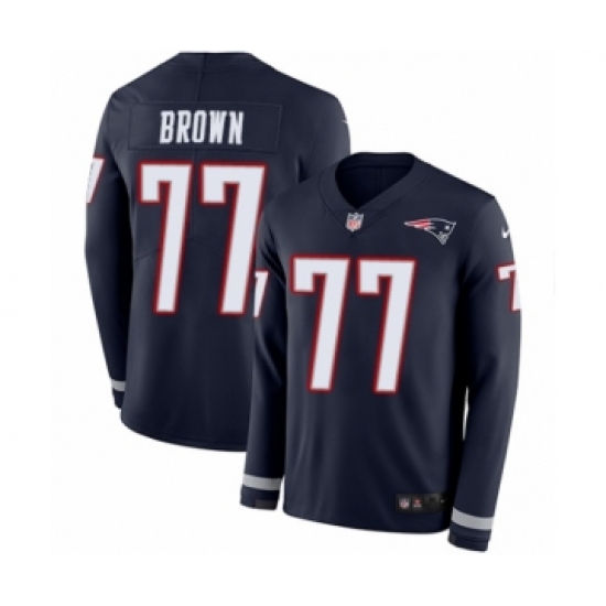 Men's Nike New England Patriots #77 Trent Brown Limited Navy Blue Therma Long Sleeve NFL Jersey