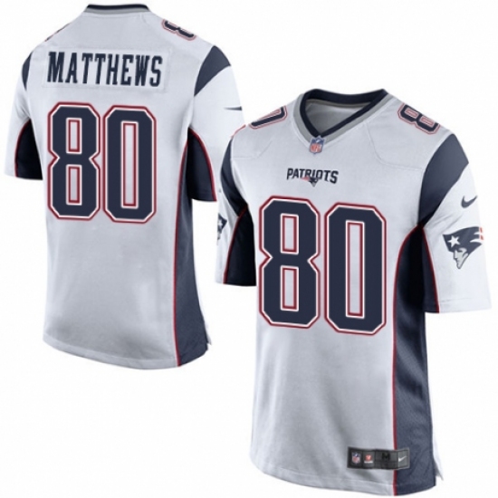 >Men's Nike New England Patriots #80 Jordan Matthews Game White NFL Jersey