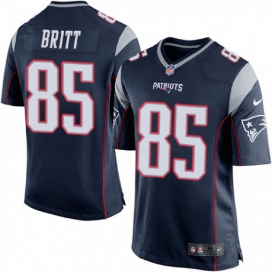 >Men's Nike New England Patriots #85 Kenny Britt Game Navy Blue Team Color NFL Jersey