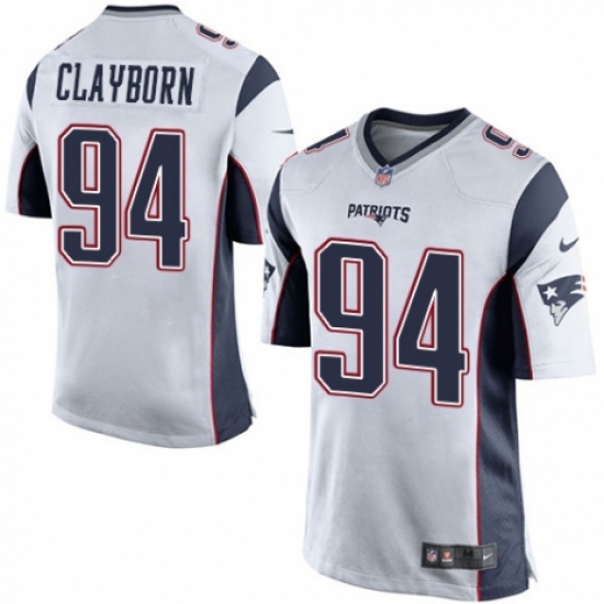 >Men's Nike New England Patriots #94 Adrian Clayborn Game White NFL Jersey