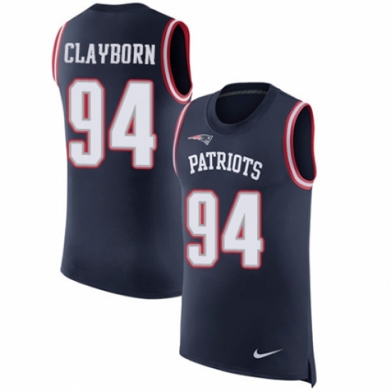 Men's Nike New England Patriots #94 Adrian Clayborn Navy Blue Rush Player Name & Number Tank Top NFL Jersey
