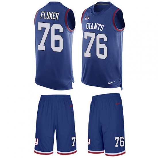 Men's Nike New York Giants #76 D.J. Fluker Limited Royal Blue Tank Top Suit NFL Jersey