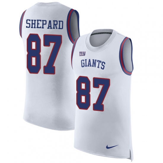 Home>NFL>New York Giants>Sterling Shepard>Men's Nike New York Giants #87 Sterling Shepard Limited White Rush Player Name & Number Tank Top NFL Jersey
