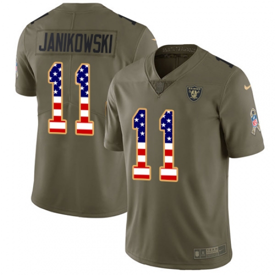 Home>NFL>Oakland Raiders>Sebastian Janikowski>Men's Nike Oakland Raiders #11 Sebastian Janikowski Limited Olive/USA Flag 2017 Salute to Service NFL Jersey