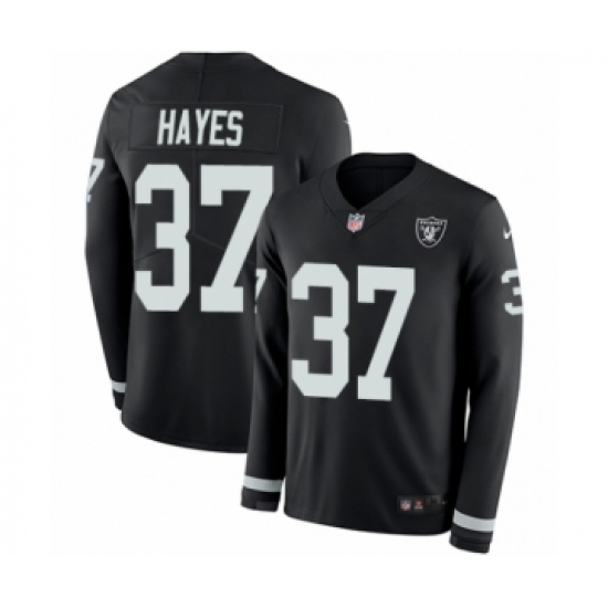 >Men's Nike Oakland Raiders #37 Lester Hayes Limited Black Therma Long Sleeve NFL Jersey