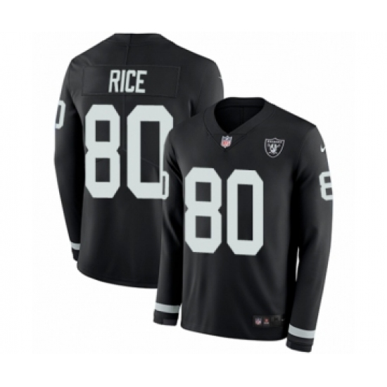 >Men's Nike Oakland Raiders #80 Jerry Rice Limited Black Therma Long Sleeve NFL Jersey