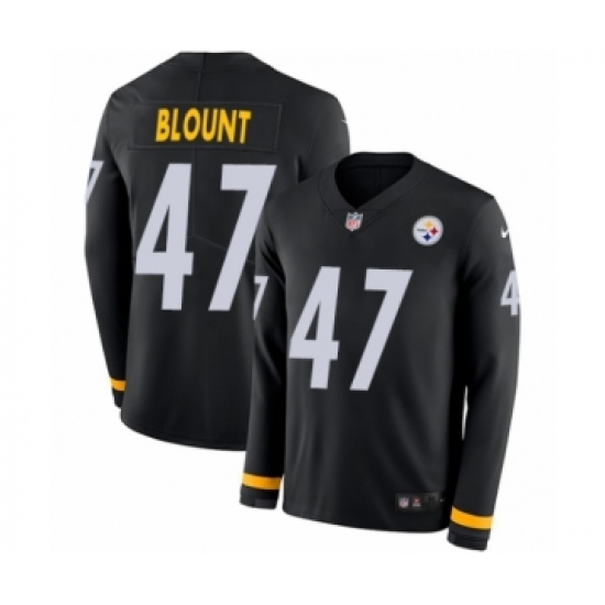 Men's Nike Pittsburgh Steelers #47 Mel Blount Limited Black Therma Long Sleeve NFL Jersey