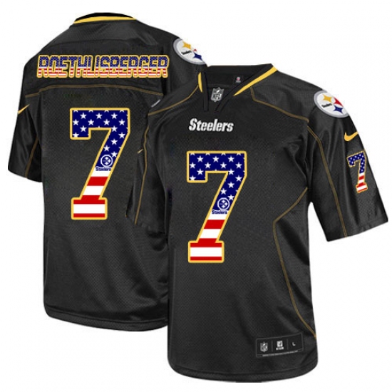 Men's Nike Pittsburgh Steelers #7 Ben Roethlisberger Elite Black USA Flag Fashion NFL Jersey