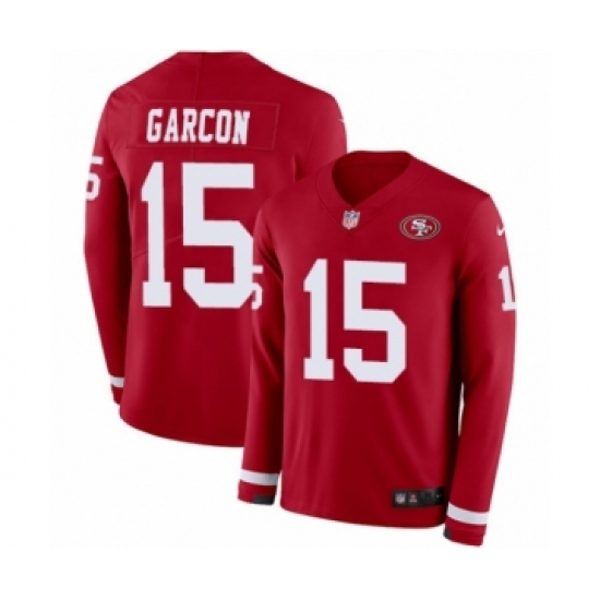 >Men's Nike San Francisco 49ers #15 Pierre Garcon Limited Red Therma Long Sleeve NFL Jersey