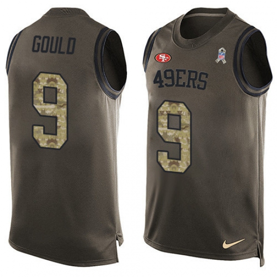 Home>NFL>San Francisco 49ers>Robbie Gould>Men's Nike San Francisco 49ers #9 Robbie Gould Limited Green Salute to Service Tank Top NFL Jersey