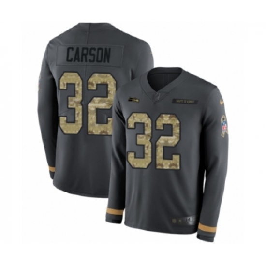 >Men's Nike Seattle Seahawks #32 Chris Carson Limited Black Salute to Service Therma Long Sleeve NFL Jersey