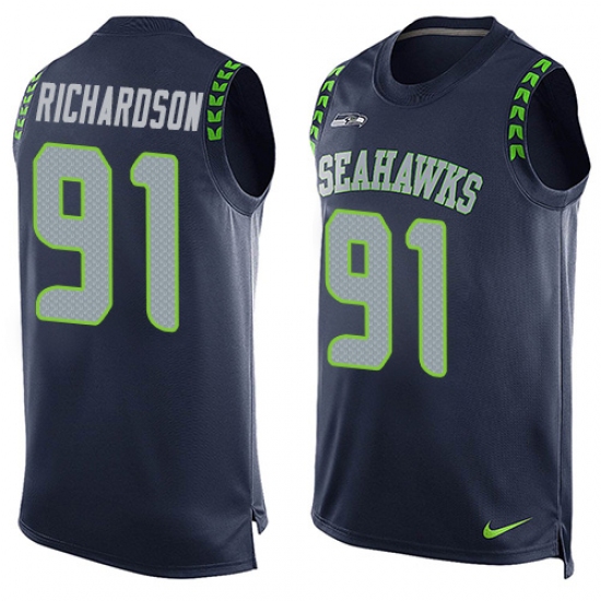 Home>NFL>Seattle Seahawks>Sheldon Richardson>Men's Nike Seattle Seahawks #91 Sheldon Richardson Limited Steel Blue Player Name & Number Tank Top NFL Jersey