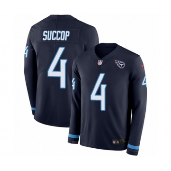 Men's Nike Tennessee Titans #4 Ryan Succop Limited Navy Blue Therma Long Sleeve NFL Jersey