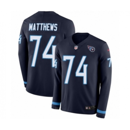 Men's Nike Tennessee Titans #74 Bruce Matthews Limited Navy Blue Therma Long Sleeve NFL Jersey