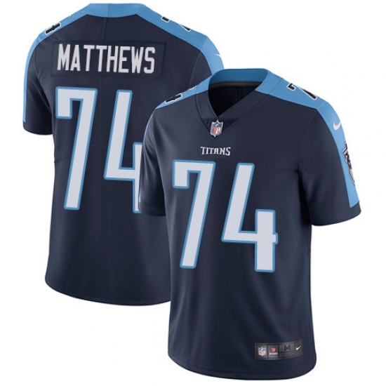 Men's Nike Tennessee Titans #74 Bruce Matthews Navy Blue Alternate Vapor Untouchable Limited Player NFL Jersey