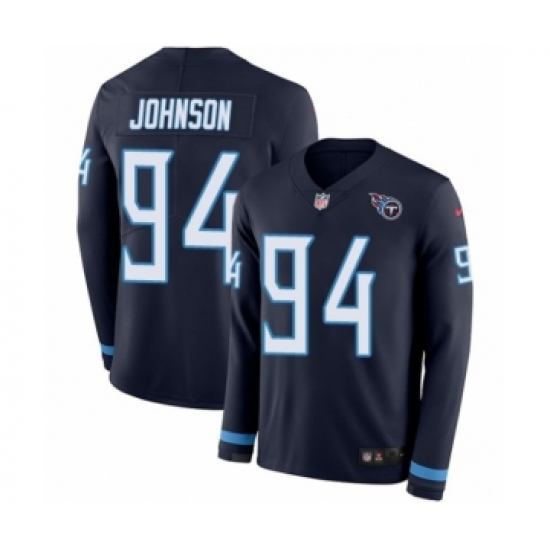 >Men's Nike Tennessee Titans #94 Austin Johnson Limited Navy Blue Therma Long Sleeve NFL Jersey