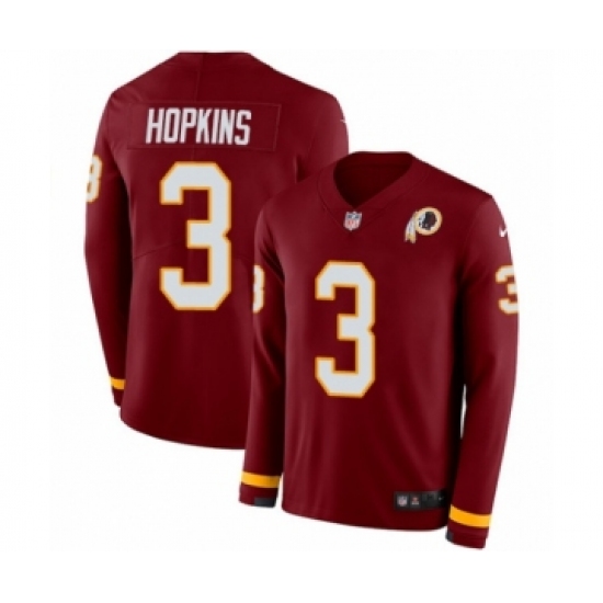 >Men's Nike Washington Redskins #3 Dustin Hopkins Limited Burgundy Therma Long Sleeve NFL Jersey