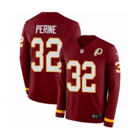 >Men's Nike Washington Redskins #32 Samaje Perine Limited Burgundy Therma Long Sleeve NFL Jersey