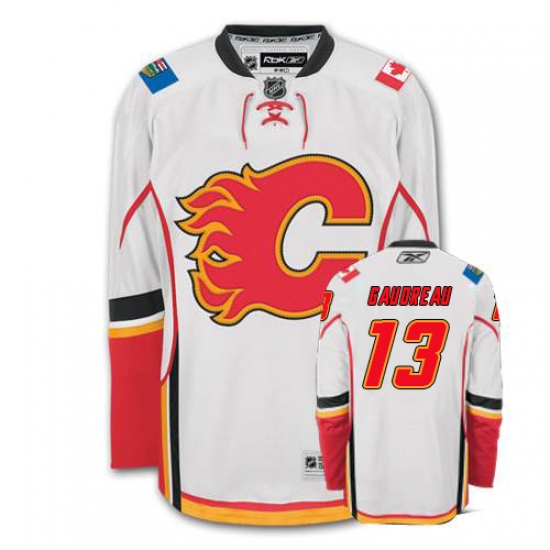 Home>NHL>Calgary Flames>Johnny Gaudreau>Men's Reebok Calgary Flames #13 Johnny Gaudreau Authentic White Away NHL Jersey