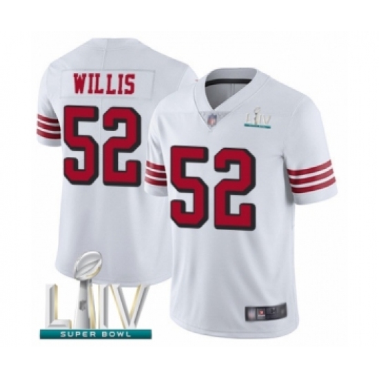 Men's San Francisco 49ers #52 Patrick Willis Limited White Rush Vapor Untouchable Super Bowl LIV Bound Football Jersey