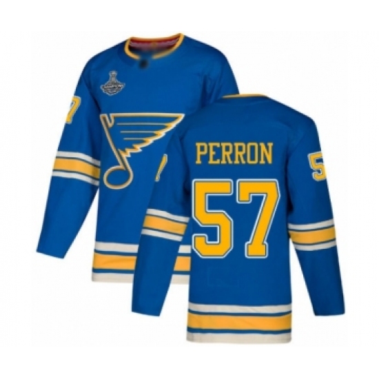 >Men's St. Louis Blues #57 David Perron Authentic Navy Blue Alternate 2019 Stanley Cup Champions Hockey Jersey