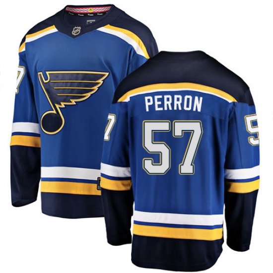 >Men's St. Louis Blues #57 David Perron Fanatics Branded Royal Blue Home Breakaway NHL Jersey