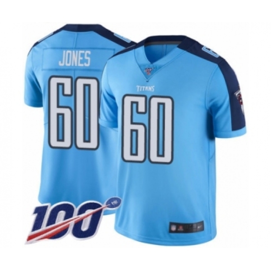 Men's Tennessee Titans #60 Ben Jones Limited Light Blue Rush Vapor Untouchable 100th Season Football Jersey