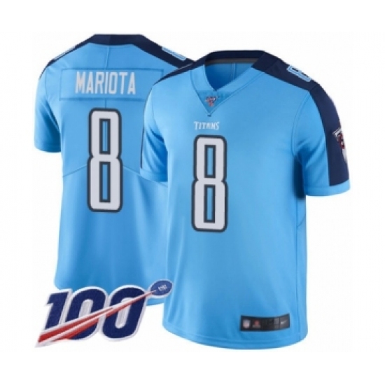 Men's Tennessee Titans #8 Marcus Mariota Limited Light Blue Rush Vapor Untouchable 100th Season Football Jersey