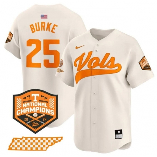 >Men's Tennessee Volunteers #25 Blake Burke Cream 2024 Champions Vapor Limited Stitched Jersey