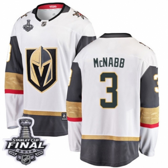 Men's Vegas Golden Knights #3 Brayden McNabb Authentic White Away Fanatics Branded Breakaway 2018 Stanley Cup Final NHL Jersey