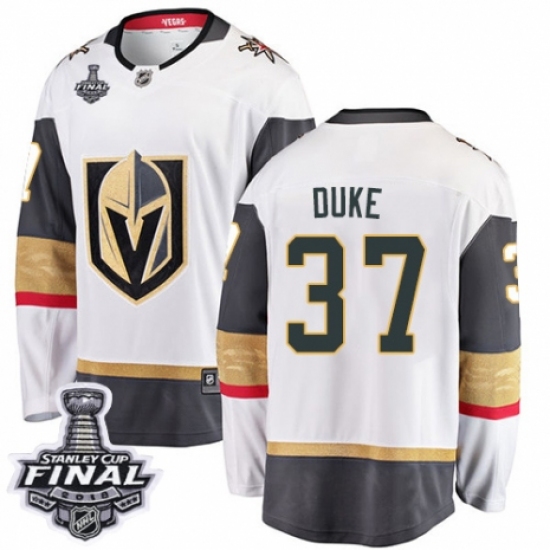 Men's Vegas Golden Knights #37 Reid Duke Authentic White Away Fanatics Branded Breakaway 2018 Stanley Cup Final NHL Jersey