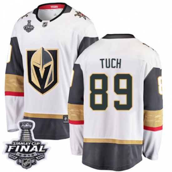>Men's Vegas Golden Knights #89 Alex Tuch Authentic White Away Fanatics Branded Breakaway 2018 Stanley Cup Final NHL Jersey