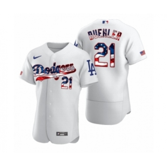 Men's Walker Buehler #21 Los Angeles Dodgers White 2020 Stars & Stripes 4th of July Jersey