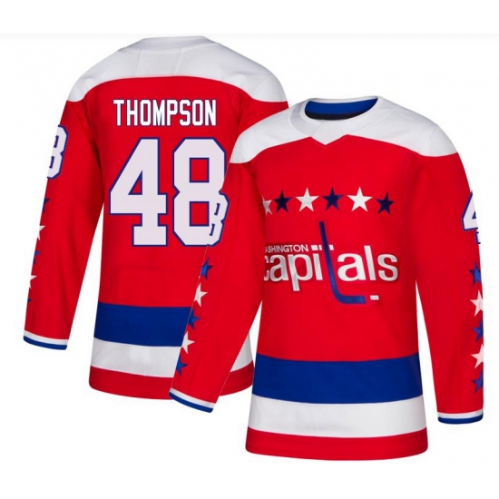 >Men's Washington Capitals #48 Logan Thompson Authentic Red Alternate Jersey