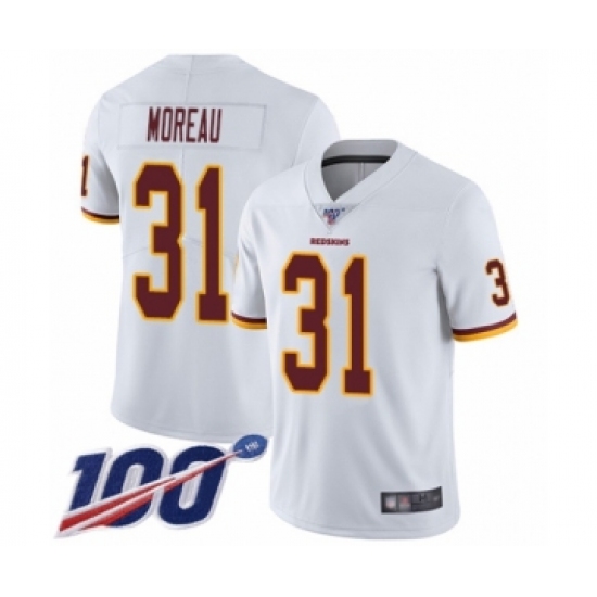 >Men's Washington Redskins #31 Fabian Moreau White Vapor Untouchable Limited Player 100th Season Football Jersey
