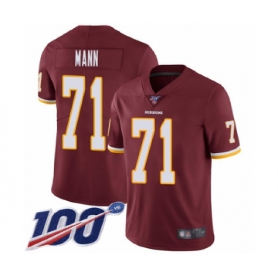 Men's Washington Redskins #71 Charles Mann Burgundy Red Team Color Vapor Untouchable Limited Player 100th Season Football Jersey