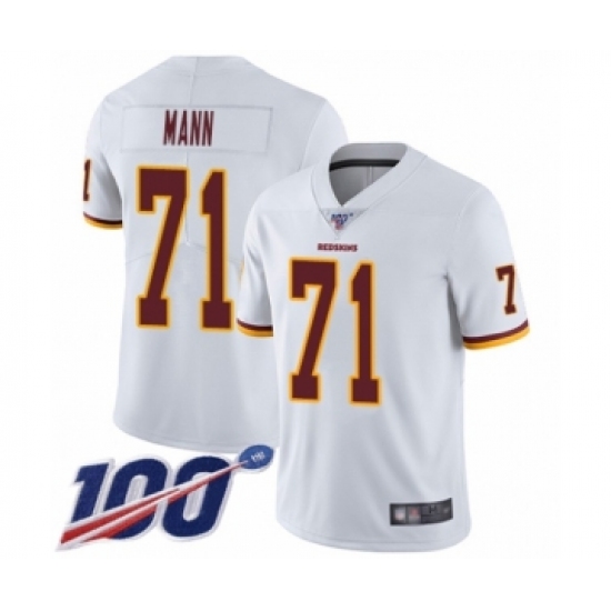 Men's Washington Redskins #71 Charles Mann White Vapor Untouchable Limited Player 100th Season Football Jersey