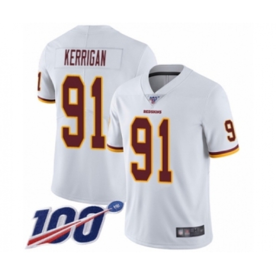 Men's Washington Redskins #91 Ryan Kerrigan White Vapor Untouchable Limited Player 100th Season Football Jersey