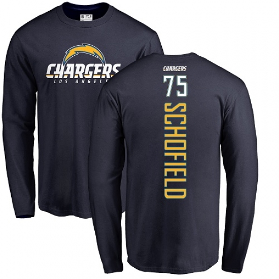>NFL Nike Los Angeles Chargers #75 Michael Schofield Navy Blue Backer Long Sleeve T-Shirt