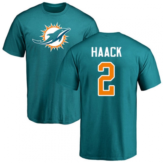 NFL Nike Miami Dolphins #2 Matt Haack Aqua Green Name & Number Logo T-Shirt