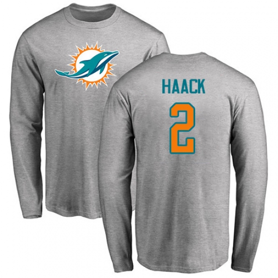 >NFL Nike Miami Dolphins #2 Matt Haack Ash Name & Number Logo Long Sleeve T-Shirtt