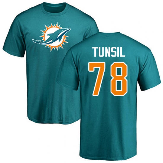 NFL Nike Miami Dolphins #78 Laremy Tunsil Aqua Green Name & Number Logo T-Shirt