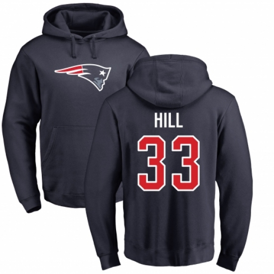 NFL Nike New England Patriots #33 Jeremy Hill Navy Blue Name & Number Logo Pullover Hoodie