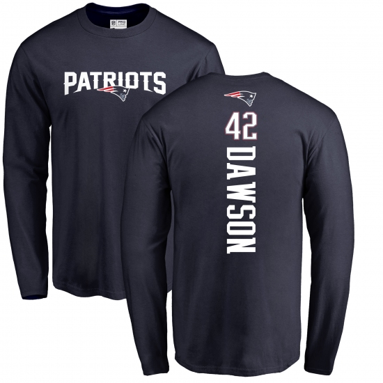 >NFL Nike New England Patriots #42 Duke Dawson Navy Blue Backer Long Sleeve T-Shirt