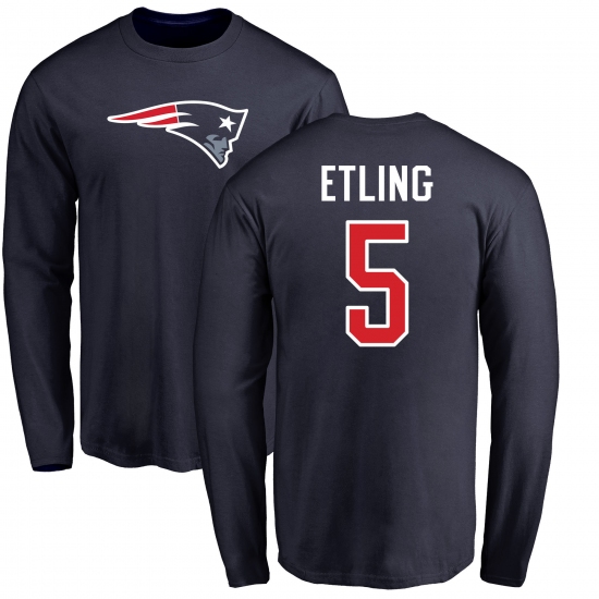 NFL Nike New England Patriots #5 Danny Etling Navy Blue Name & Number Logo Long Sleeve T-Shirt