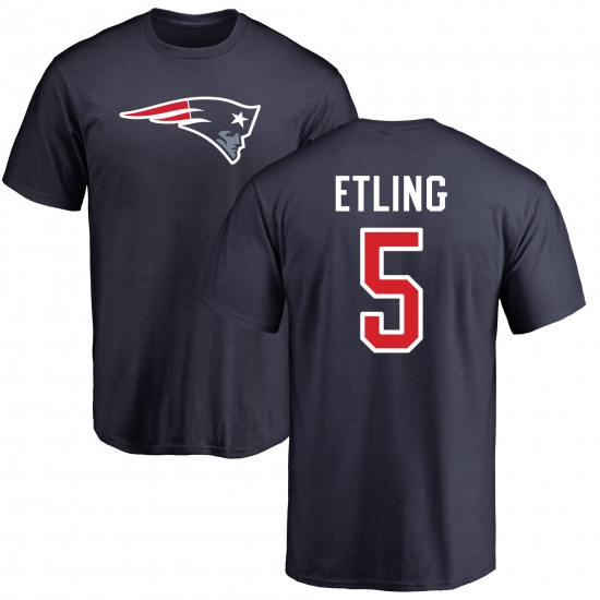 NFL Nike New England Patriots #5 Danny Etling Navy Blue Name & Number Logo T-Shirt