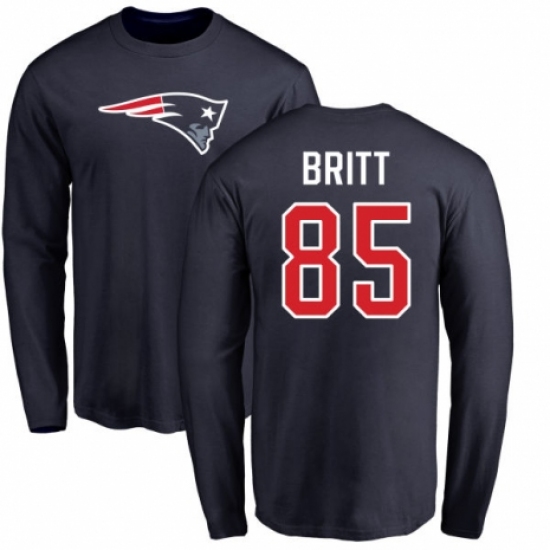 >NFL Nike New England Patriots #85 Kenny Britt Navy Blue Name & Number Logo Long Sleeve T-Shirt