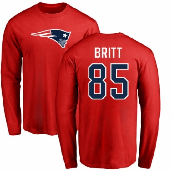 >NFL Nike New England Patriots #85 Kenny Britt Red Name & Number Logo Long Sleeve T-Shirt